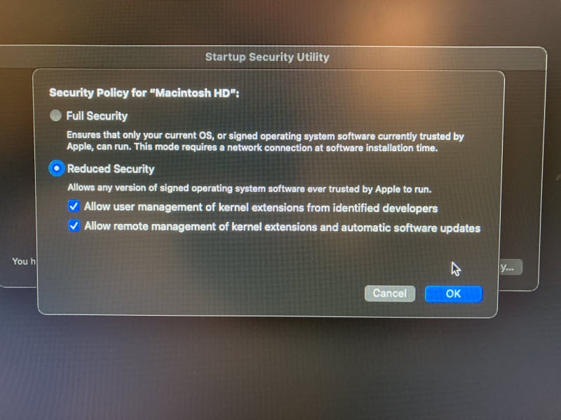 This new process applies to Mac computers running the Apple M1 processor and is a change prompted by Apple. They no longer permit developers to create file system extensions (drivers) without the user specifically permitting them at the hardware level (in the recovery console).