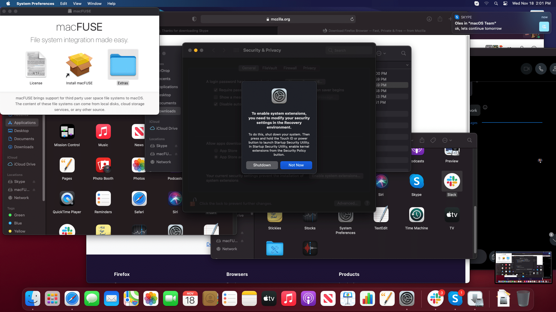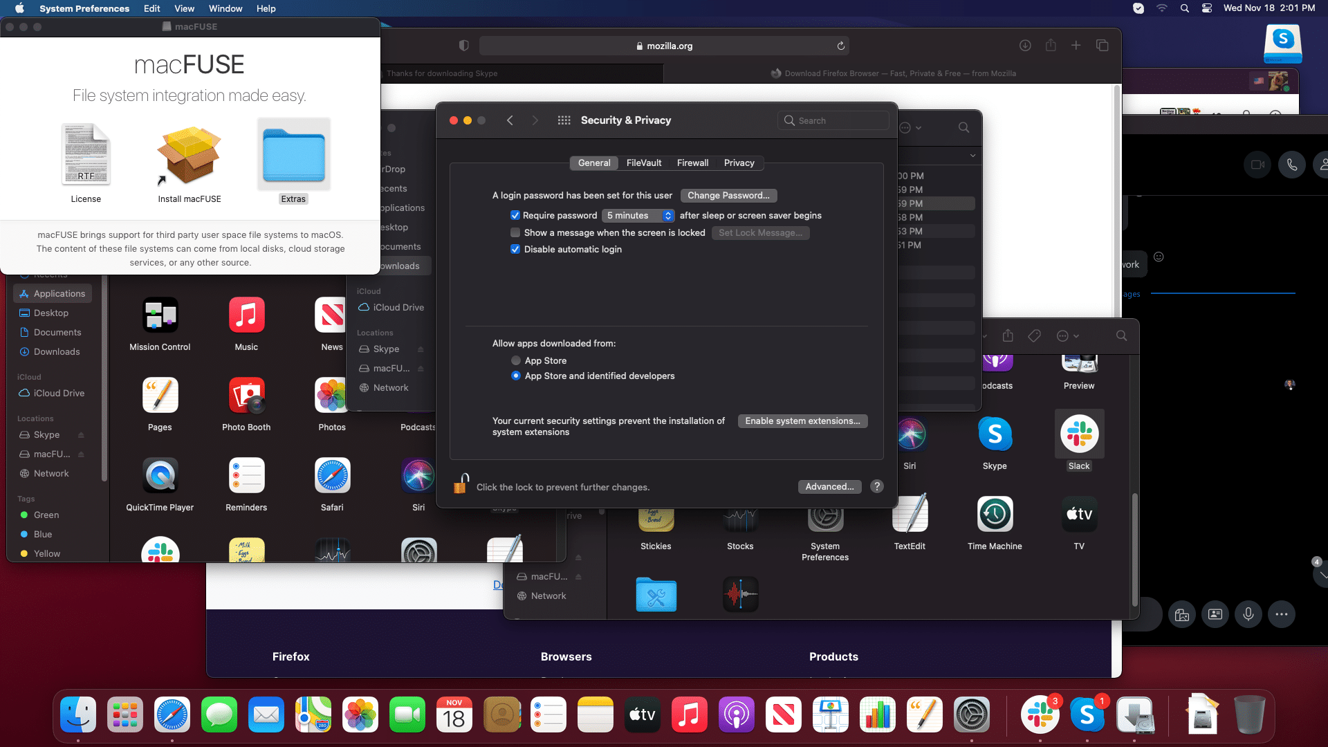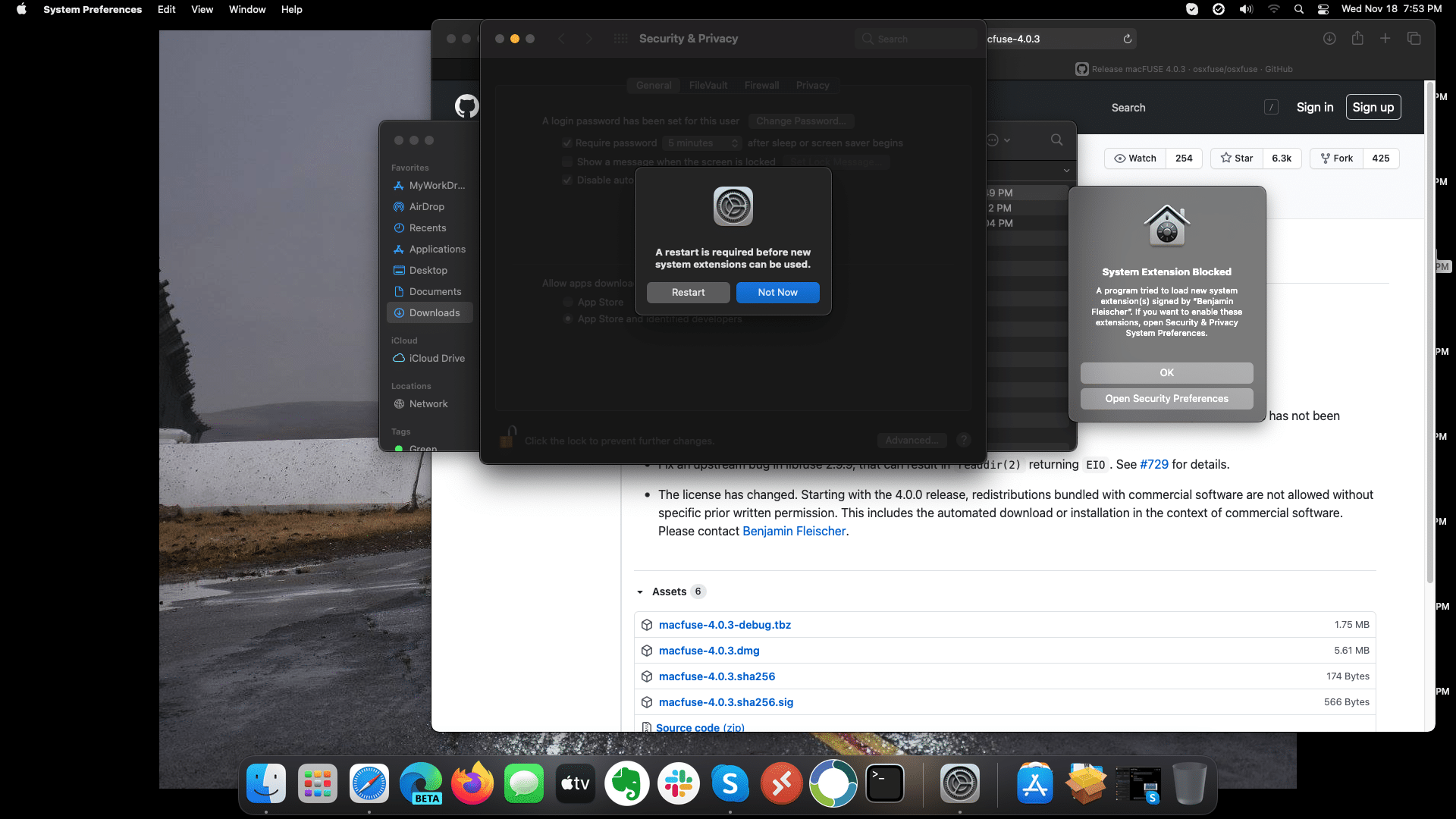 During the installation process, you will receive multiple warnings that the macFUSE extension by Benjamin Fleischer (the owner of macFUSE) cannot be loaded.