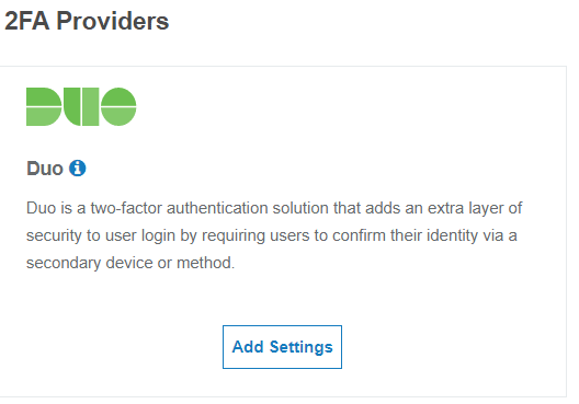 Selecting the Add Settings button allows you to configure a new service, but enabling it must be done from the Settings or Enterprise tab. This permits administrators to view/edit configurations for items which are not currently in use - to view history - or to stage pending changes.