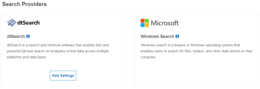 After enabling/configuring the desired service in the Settings or Enterprise tab, the selected option, as well as other possible options, can be viewed/configured within the Integrations tab.