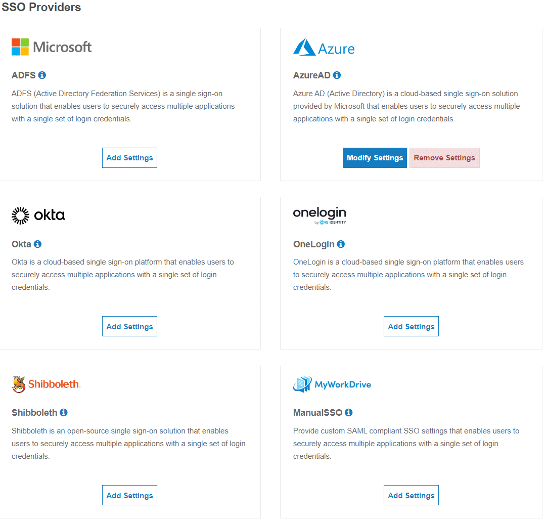 Starting with MyWorkDrive 6.4, we have added a new Integrations tab to server Administration. This provides a type of storefront as well as a easy-access management area for configuration of applications that can integrate with MyWorkDrive.