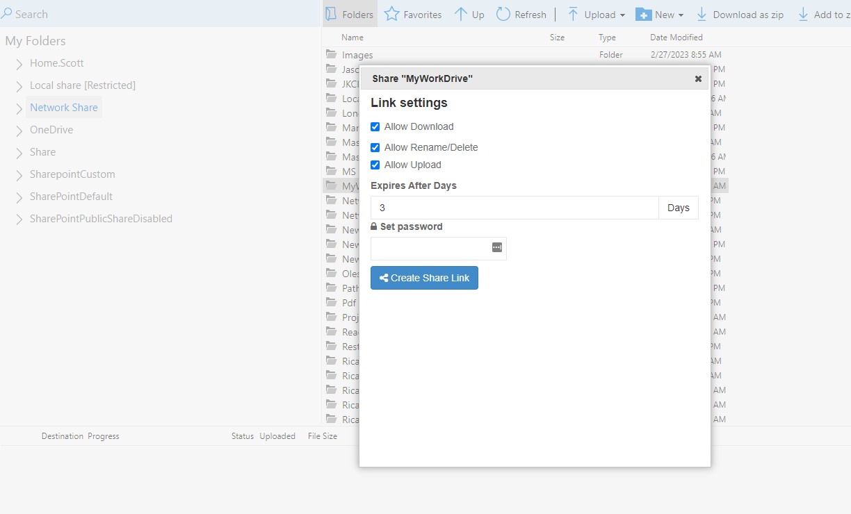 Allow Upload - If this option is unchecked, a user will not be allowed to upload files via the public sharing link.