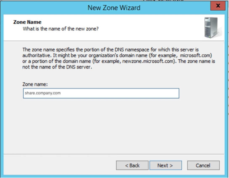 Note: this will not affect name resolution for any other resource beneath company.com, as the system only claims authority for share.company.com.