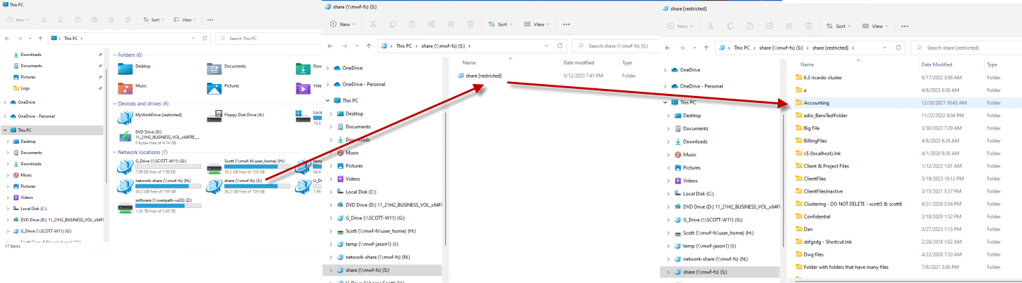 If you are using Data Leak Protection on any of your file shares, the user will see the share as an option in Explorer with the notation Restricted.