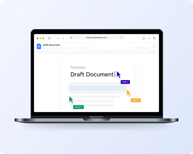 Multiple users can edit the same document simultaneously with real-time co-authoring. See each other's cursors, watch changes appear live, and reduce manual merging.