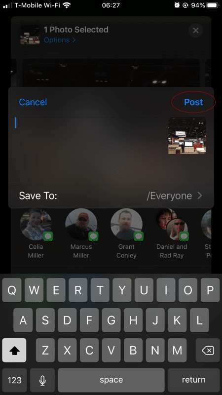 This will return you to the upload screen, where you can tap post. After taping Post, the window will begin processing your upload. It may remain on this window for a few moments before proceeding to process the upload in the background.