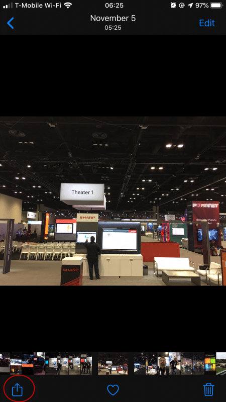 From Photos, tap on a photo and you'll be given the option to upload (or edit, favorite, or delete). Select upload.