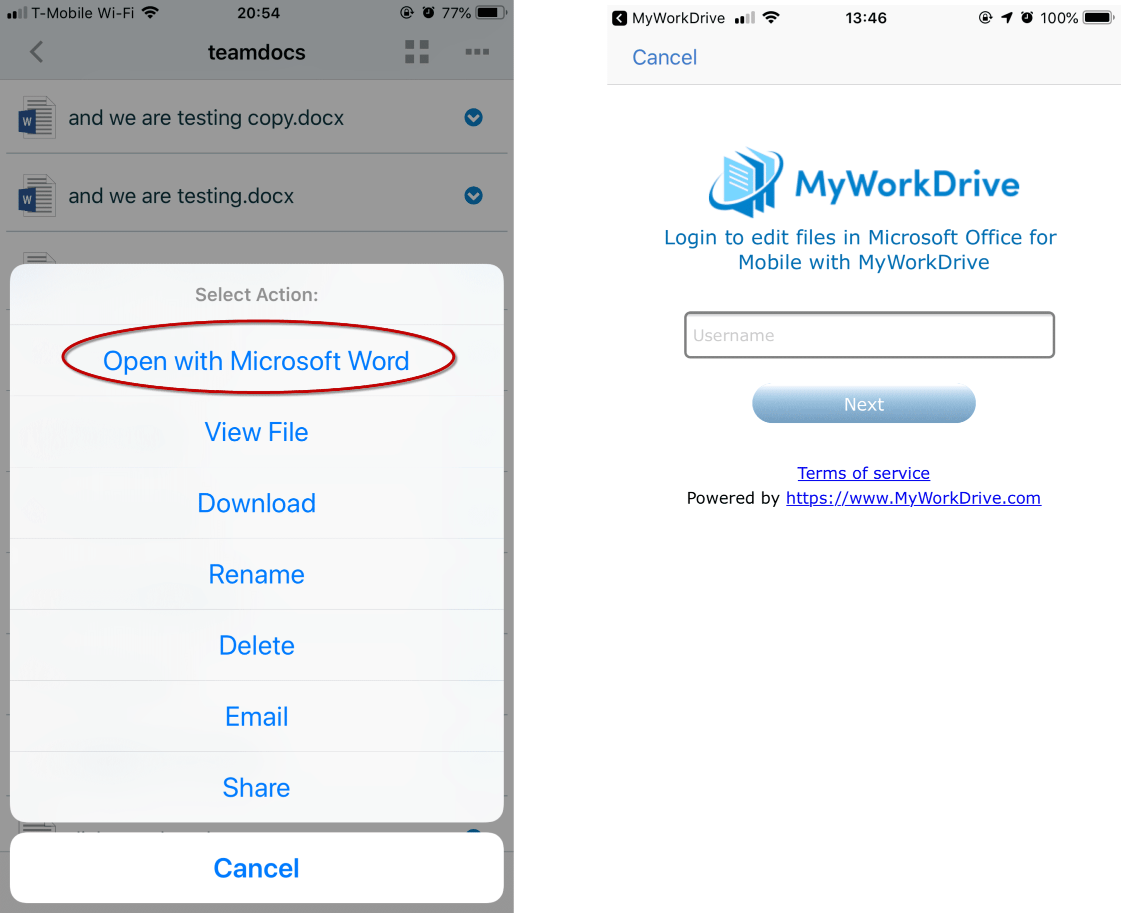 Watch the 1-minute video now to see how to add MyWorkDrive Office integration on iOS devices. Android support is also supported with the latest versions of MWD Server and Android office apps released in April 2018.