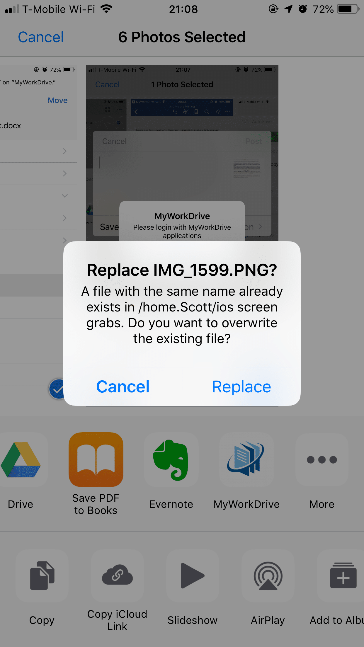 You may need to grant MyWorkDrive permissions to your Photos library.